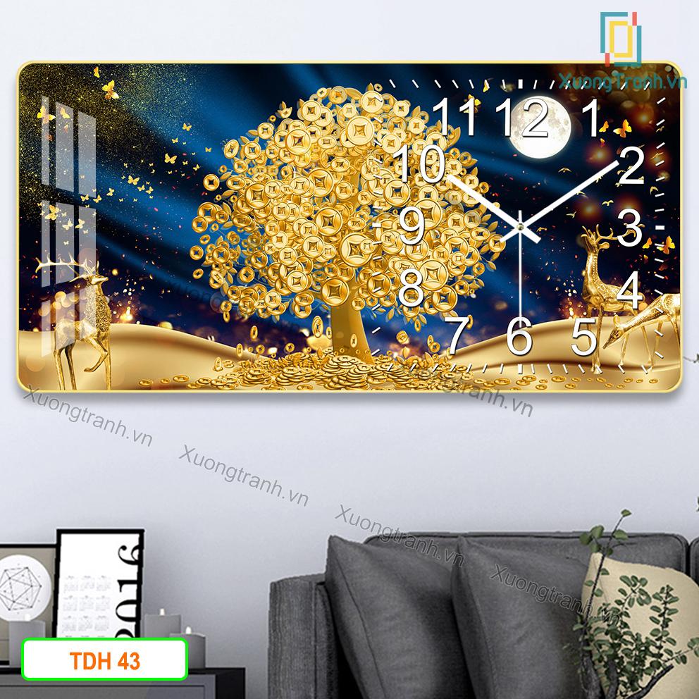 Tranh Tráng Gương Đồng Hồ Hươu Sừng Hoa TDH51