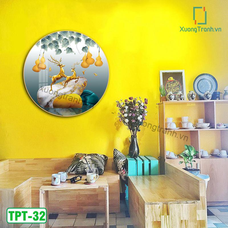 Tranh Tráng Gương Hươu Sừng Hoa Cao Cấp TPT52