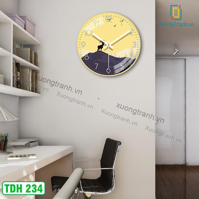 Tranh Tráng Gương Đồng Hồ Cao Cấp Hươu Nai TDH234