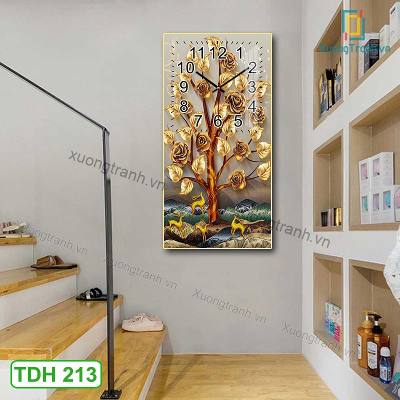 Tranh Tráng Gương Đồng Hồ Cao Cấp Hươu Nai TDH102